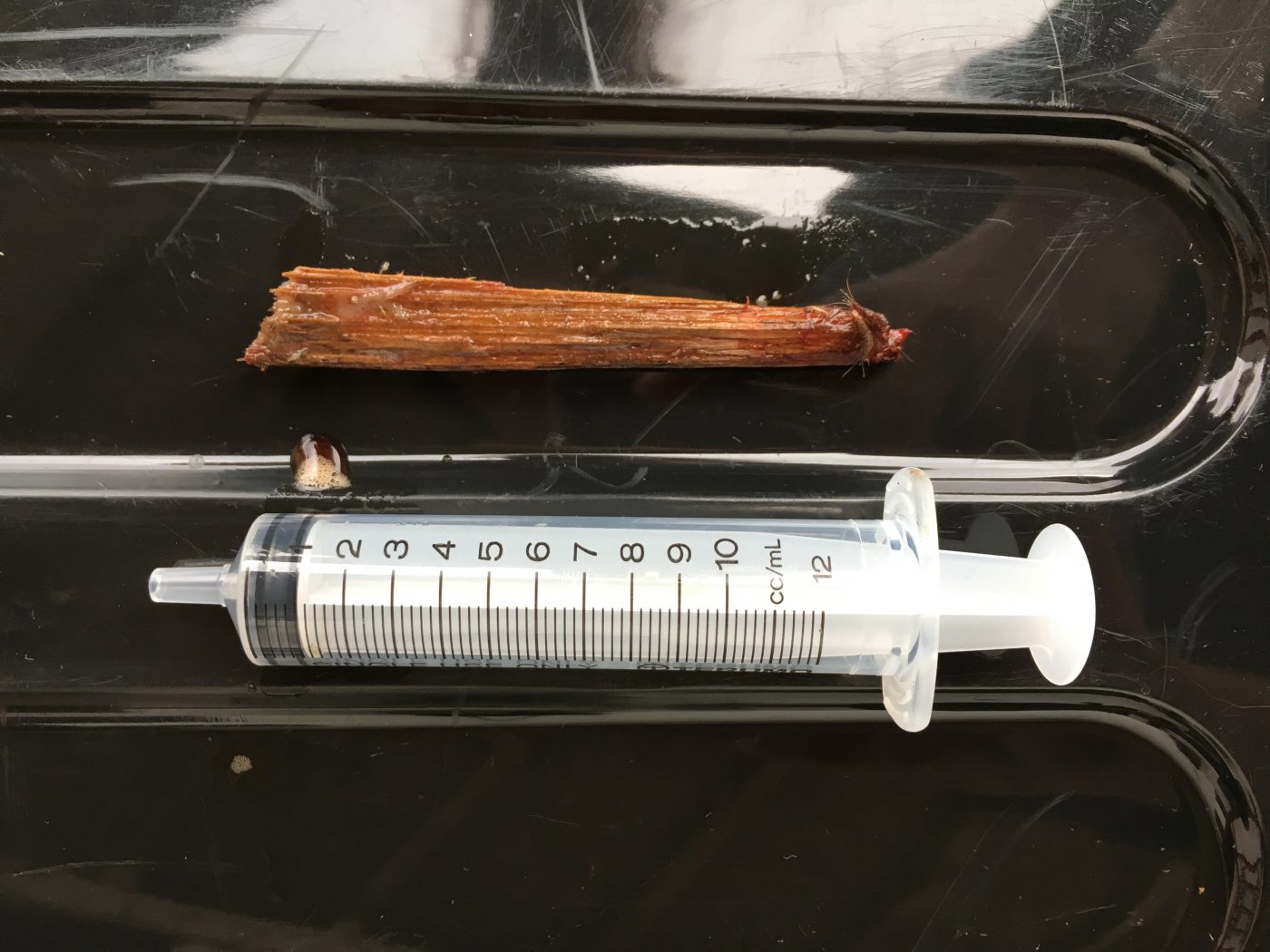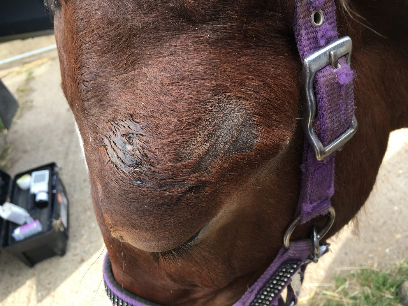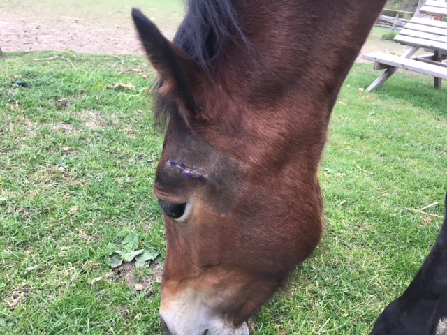 One of our mixed practice Veterinary Surgeons, Sioned was recently called out as his owner had found Jackson with some wood embedded between his eye and ear. On arrival Sioned sedated him to clip and clean the area and exposed just how large an area was affected. She incised over the foreign body and removed a 7cm long piece of stick!! The area was thoroughly flushed with sterile saline and sutured.